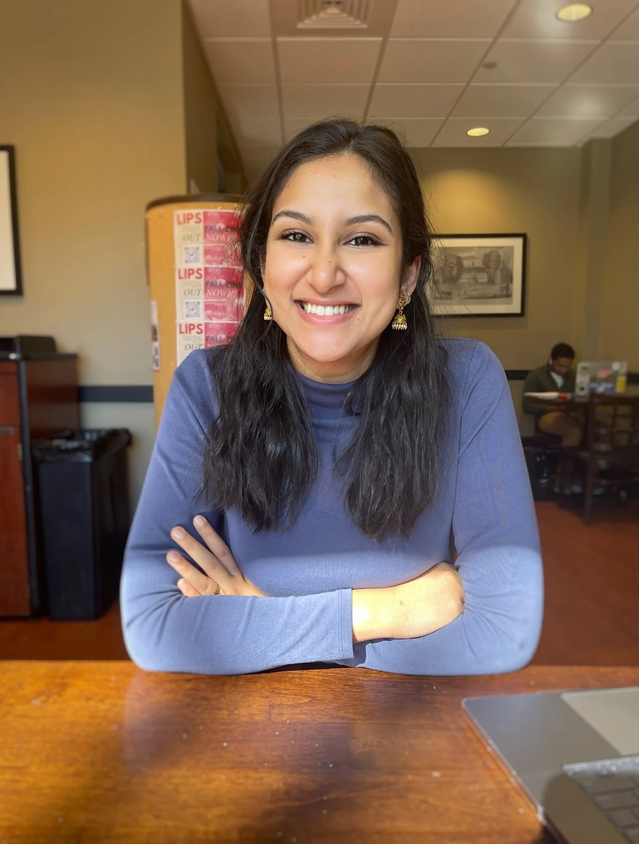 Portia Dai (pronounced Por-Sha Dye) is an English and Education double-major from Fairfax, VA. When she isn't doing work at Lodge 1 (and probably sipping on a peach smoothie), she enjoys hiking with friends and recently discovered she loves trekking up snow-covered trails. She also needs everyone she meets to know that her favorite animals are ducks and that she is up for a game of Word Hunt on Game Pigeon at any time. She recently got on BeReal and gets extremely excited whenever it goes off — add her @portiaduck.